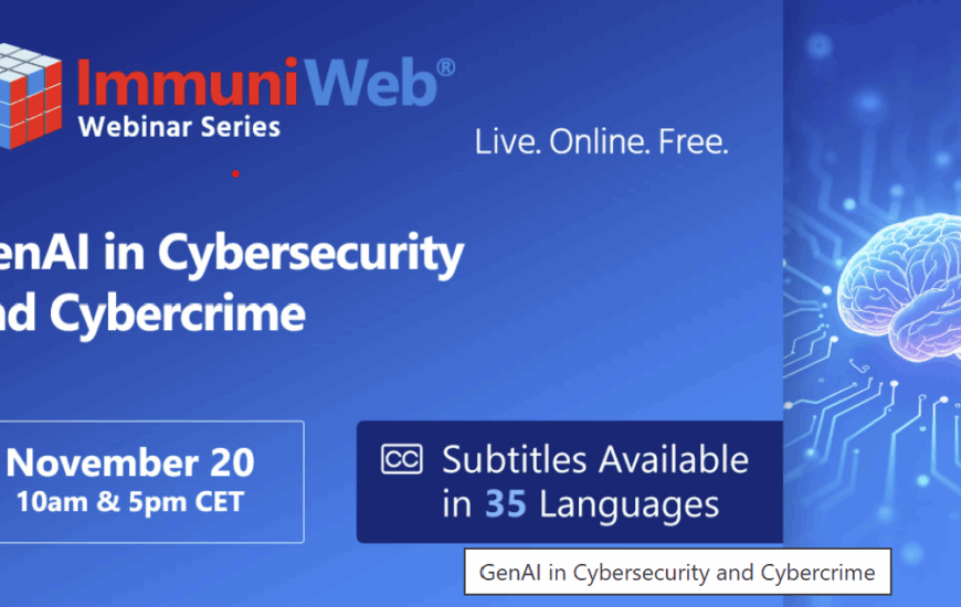ImmuniWeb is hosting an interactive webinar “GenAI in Cybersecurity and Cybercrime” for all our customers and partners who will receive personal invitations. Public is also welcome to join by a quick registration below (subject to approval). During this 60-minute webinar...