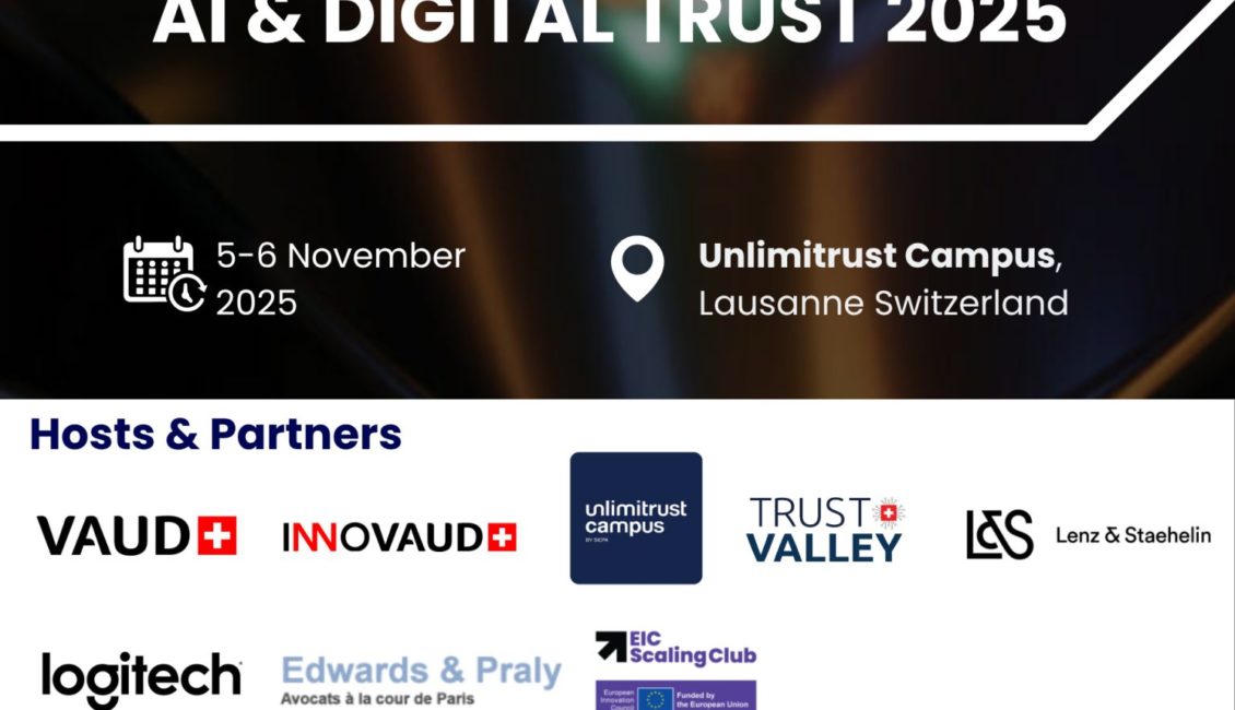 The event is taking place thanks to unlimitrust Campus, Etat de Vaud, Innovaud, Trust Valley, and partners Logitech, Lenz & Staehelin, edwards praly and the EIC Scaling Club!
