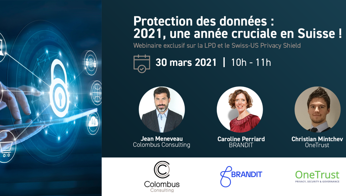 Colombus Consulting, BRANDIT, et OneTrust vous proposent un webinaire exclusif sur la protection des données en Suisse.