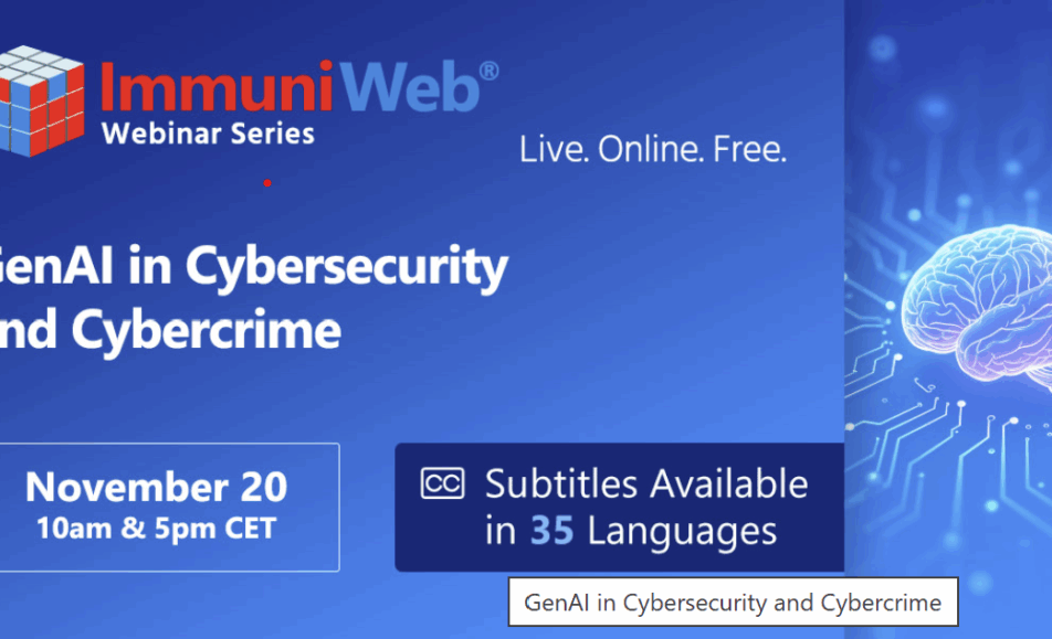ImmuniWeb is hosting an interactive webinar “GenAI in Cybersecurity and Cybercrime” for all our customers and partners who will receive personal invitations. Public is also welcome to join by a quick registration below (subject to approval). During this 60-minute webinar...
