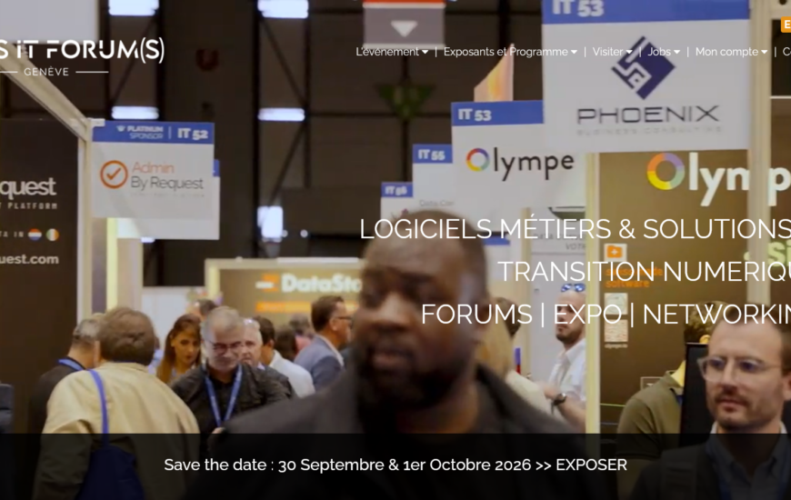 Les Swiss IT Forum(s) c’est le mix entre : Un FORUM avec 8 grandes thématiques (> Plus). Un SALON dédié aux rencontres entre directions informatiques, responsables métiers et fournisseurs de solutions. Avec plus de 2’000 visiteurs professionnels, le Swiss IT Forum(s) Genève est aujourd’hui l’événement de...