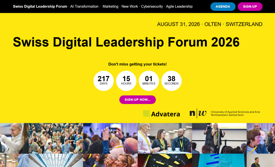 Join us on August 31, 2026, for a one day digital leadership conference in Olten, Switzerland. Experience a day filled with engaging workshops, talks, and discussions on key topics such as responsible AI, digital leadership, digital transformation, corporate culture, agile...